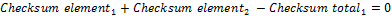The checksum works by taking the sum of all the values marked as checksum element and subtracting from this all value that are marked as checksum total. If the result is zero, then the checksum will pass.