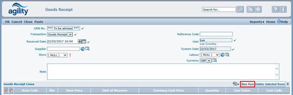 This transaction is used for receiving items which have not been ordered using the Purchase Order functionality within Agility.