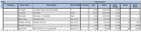 Any items where the value issued is high should be looked into with a view to finding a better price to help reduce costs. High volumes of issues of the same item should also be looked into to see why so many are being used. High usage of a particular part or item could indicate a failing in the production process or maintenance schedule.