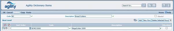 The next level can be entered as previously by clicking on Add or New Row on the Next Level grid.