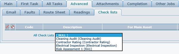 This flag is controlled by the system and will only complete when all mandatory items on the checklist have been completed. Mandatory items are marked with ‘*’. Dependant on the configuration of the checklist it may not possible to progress the work order to the next status in the work flow until the checklist has been completed.
