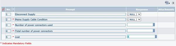 Checklists are items that can be attached to a work order and are used to capture data using pre-defined questions or prompts. One or more checklists can be attached to a work order. The checklists are pre-defined in the system, for more information on defining checklists please see the Checklists and Work Order Types topics in the Standing Data Chapter.