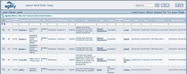 Work Order Logon/Logoff functions are provided to easily mark the Work Order and task the employee is currently working on. Once the Work Order or task is completed or suspended, employee can easily log off the currently assigned Work Order. Logon/Logoff automatically creates a labour transaction record and calculates the cost based on the time between logon and logoff actions.