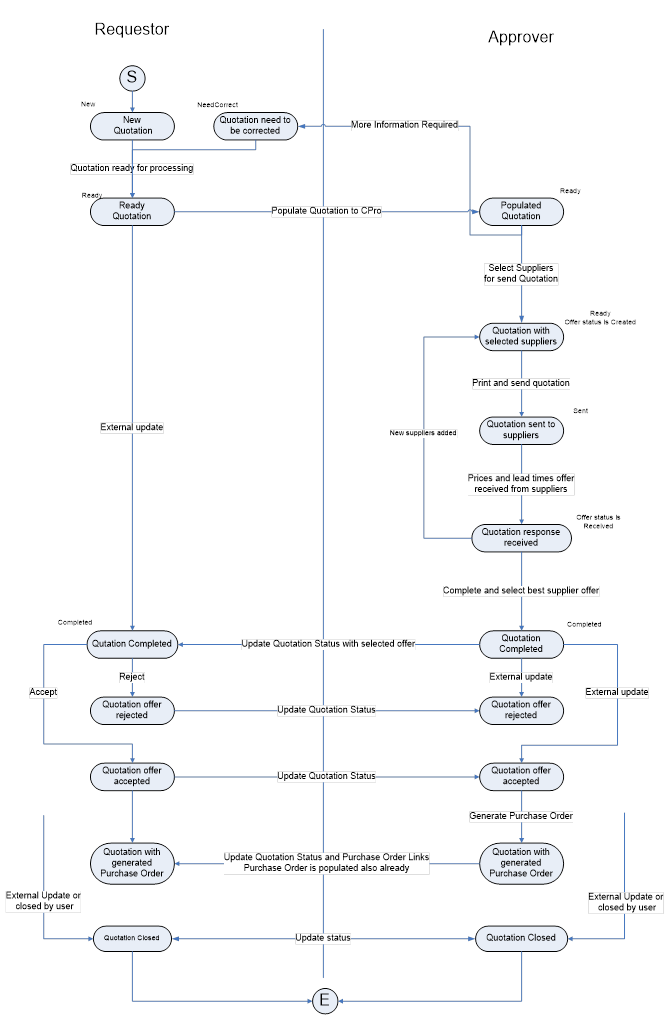 • Quotation details from suppliers are fed back to the quotation document and the preferred supplier offer is selected.
